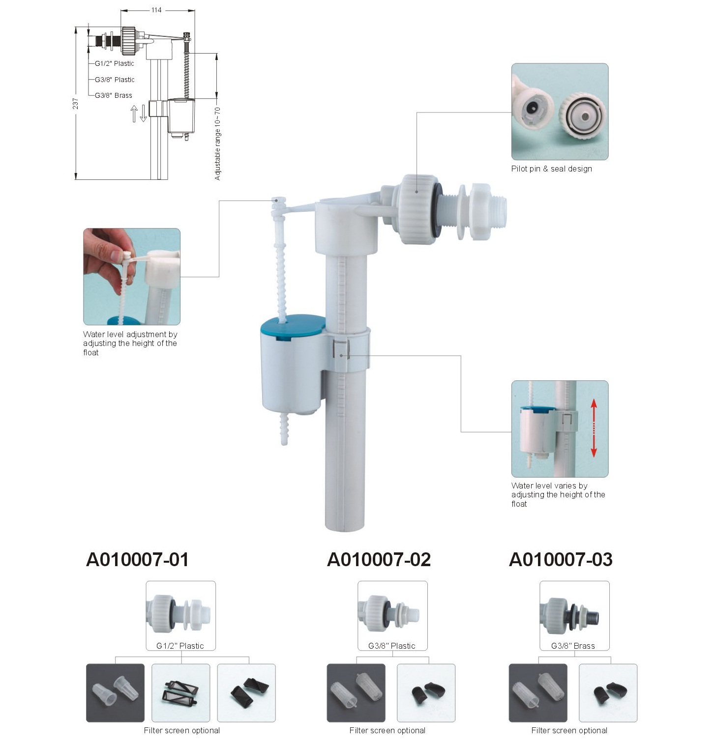 塑料/銅接口 G1/2、塑料/銅接口 G3/8 可選